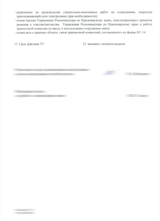 Образец запроса на получение ТУ на присоединение: скачать; Образец ТУ на присоединение: страница 2, страница 3, страница 4.